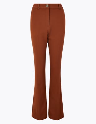 Womens Brown Stretch Bootleg Trousers