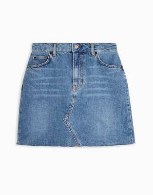 Topshop high-waist denim mini skirt in