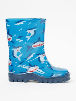 Blue Shark Print Wellington Boots